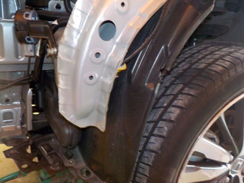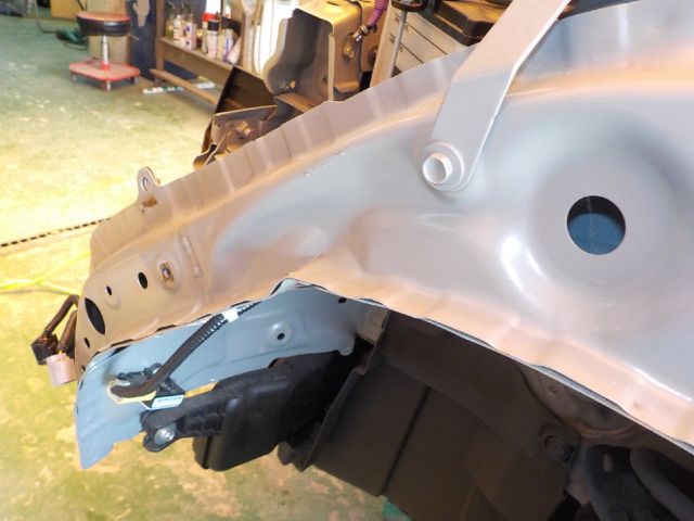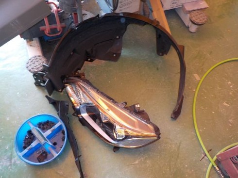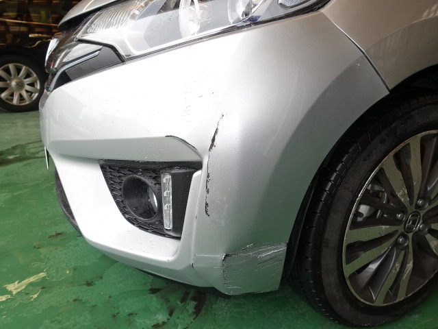 作業内容:フロントバンパー取替、左ヘッドライト取替、左フロントフェンダー鈑金修理、内板骨格部鈑金修理