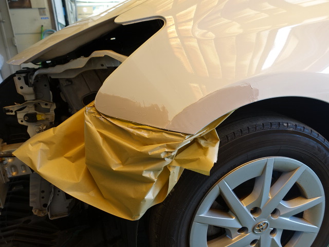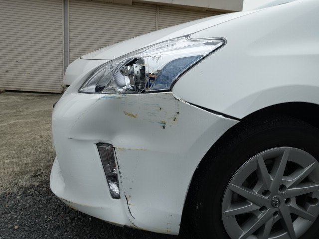 作業内容:フロントバンパー取替、左ヘッドライト取替、左フロントフェンダー鈑金修理