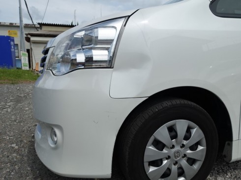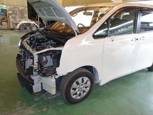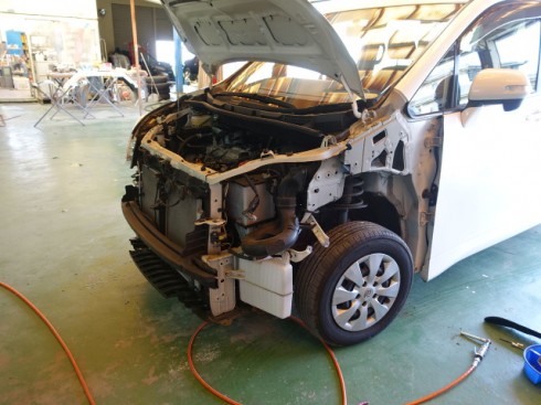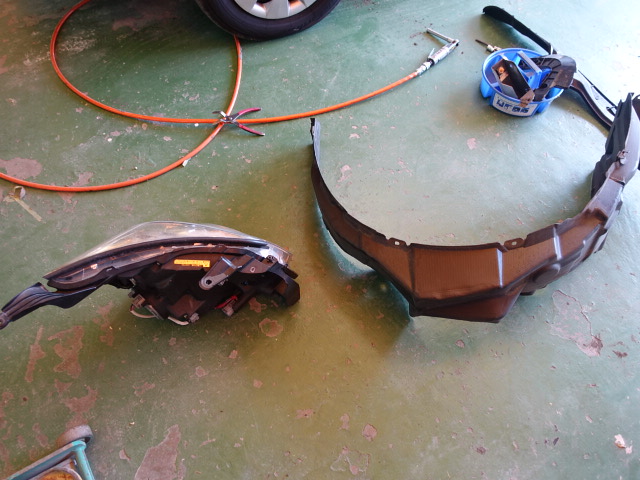 作業内容:フロントバンパー取替、左ヘッドライト脱着、左フロントフェンダー取替